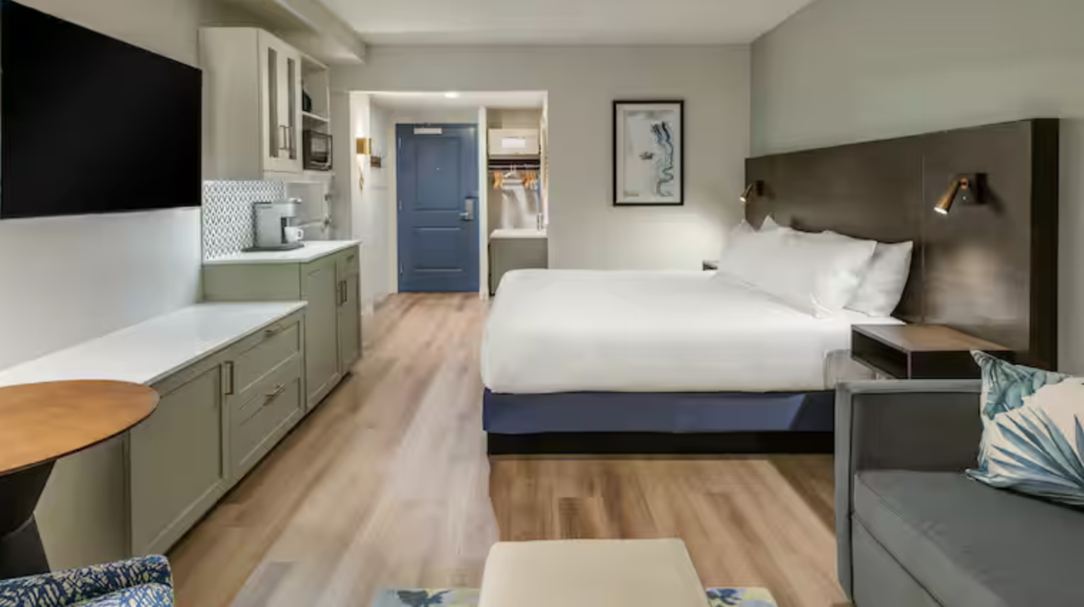 Brighton Suites Hotel features a sleeper sofa with complimentary bedding, an in-room safe to keep your precious belongings, a kitchenette with a wet bar, a microwave, a mini-fridge, and a coffee maker. Suites also include free Wi-Fi, two 50" LED TVs with GuestCast which gives guests the ability to cast content from their own devices onto televisions.